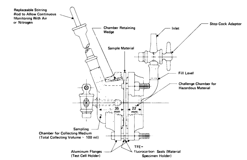 包括两个室: 测试室和捕集室, 测试室跟试样的外表面接触, 捕集室跟试样的内表面接触。