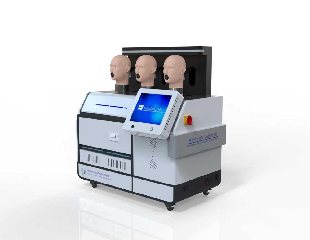 将面罩戴在匹配的试验头模上,封死吸气阀,润湿呼气阀。启动真空泵,使面罩内压力达设定值,停止抽气,开始计时,观察并记录标准内规定时间内面罩压力变化值。