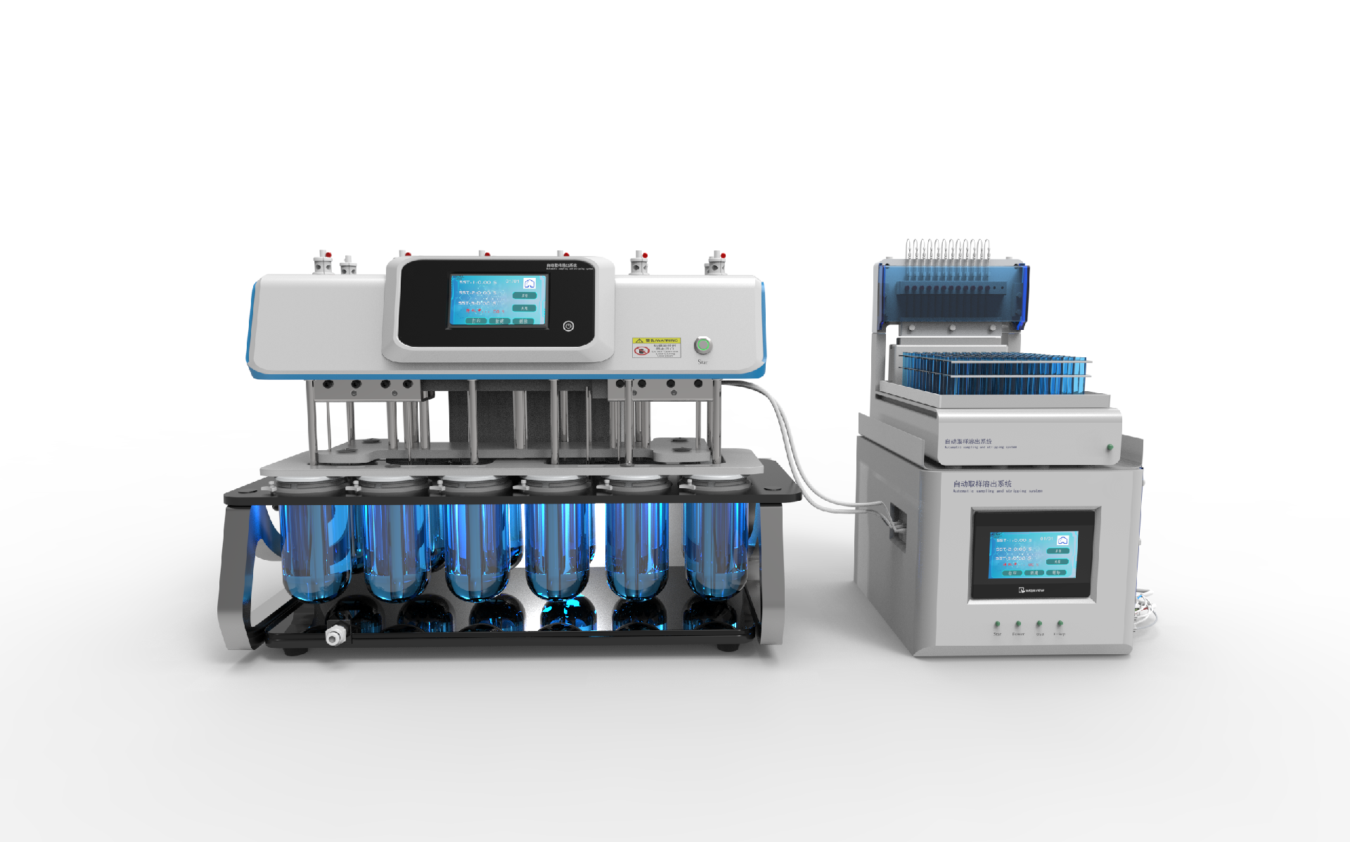 溶出自动取样系统采用新型的旋转陶瓷泵,实现高精度自动过滤、取样和补液,结构进,控制准确,智能化程度高,技术参数全符合国家组织制定的《药物溶出度仪机械验证指导原则》中的要求。溶出自动取样系统溶出度测定仪