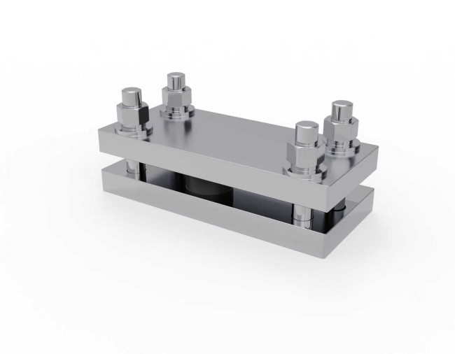 B.5.2 测量后,将试样置于装置的两平板之间,压缩试样厚度的50%,拧紧螺帽固定平板。