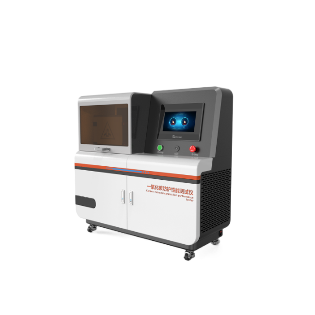 一氧化碳防护性能试验装置依据标准GB21976.7第6.5.1条款设计制作,对过滤式消防自救呼吸器的一氧化碳防护性能进行检测的装置。该装置在密封箱能够模拟含有超量一氧化碳混合气体的环境,并对在此环境下的过滤式自救呼吸器进行一系列防护性能的检测试验;如透过过滤装置的一氧化碳的累积量、呼气阻力、吸气阻力等。
