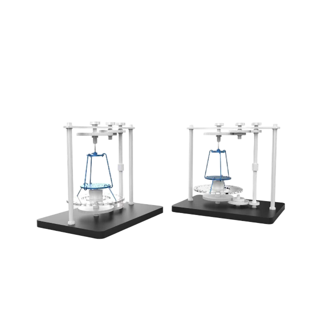 磁致扭矩测量装置于磁共振系统中的静磁场对器械产生扭矩,使器械长轴沿磁场方向排列,该扭矩可通过扭摆法测量将器械放置在悬挂于扭簧的载物盘上。试验装置位于磁共振设备的磁体中央磁场均匀处。扭矩大小取决于载物盘相对于平衡位置的偏转角。通过旋转支撑扭和载物盘的框架,可测得植入物的偏转角,从而计算出扭矩。将最大扭矩与器械的最恶劣重力矩进行比较,最恶劣重力矩等于器械最大线性尺寸和重量的乘积。