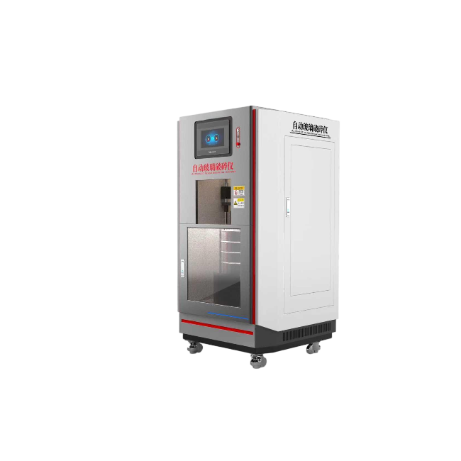 玻璃试样放入碾体中,杵自动下降把玻璃制品击打成碎块,设备自动振动套筛,合格样品与玻璃颗粒废弃物分开收集。