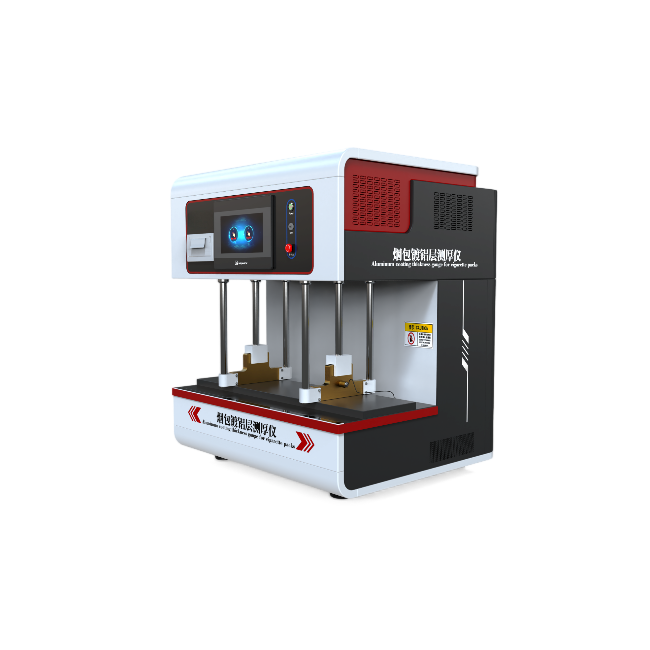 试样金属镀层为一段金属导体,依据欧姆定律测量规定长度和宽度试样的金属镀层电阻值,以方块电阻表示金属镀层的厚度或直接计算其厚度。标准中对真空金属镀层厚度测量装置也进行了明确规定,要求电阻测量误差不大于士1%, 装置的测量宽度不小于100m m,两测量头间的距离精度为±0.10mm。