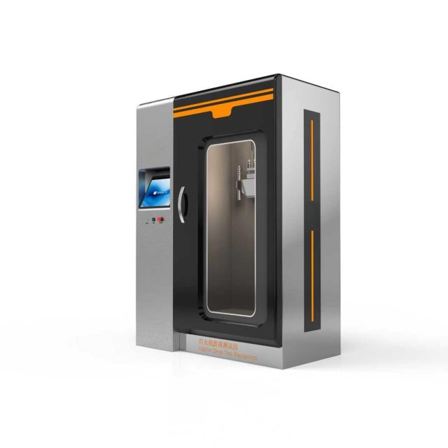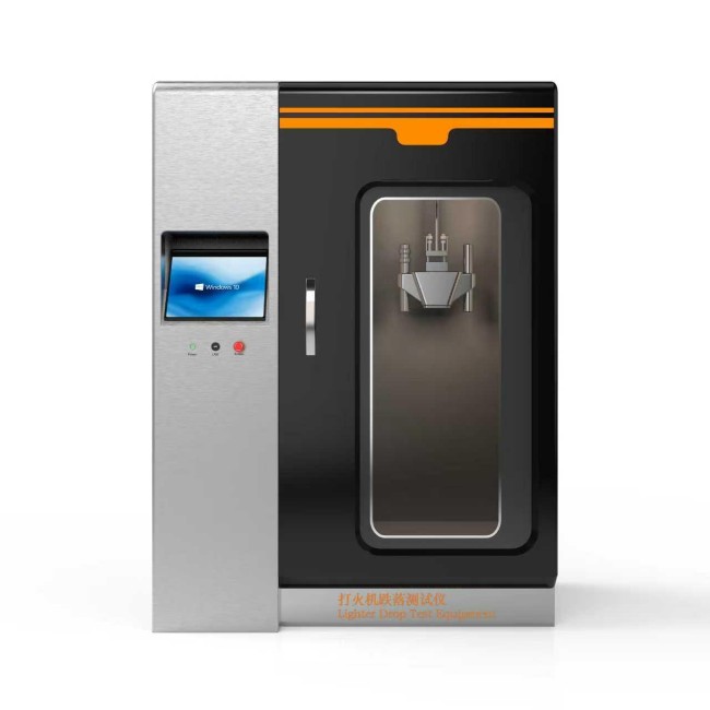 设备介绍打火机跌落测试仪让试验样本从(1.5±0.1)m高处自由跌落至混凝土地表面,三次跌落试验样本初始姿态为:1)底部朝下;2)底部朝上;3)水平观察试验样本在每次跌落试验中是否有燃料箱破裂,或者出现持续自动点火,若出现以上任意现象,则视为不合格。执行标准:GB 25722-2010/ISO 9994:2005《打火机安全与质