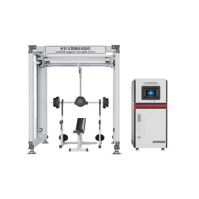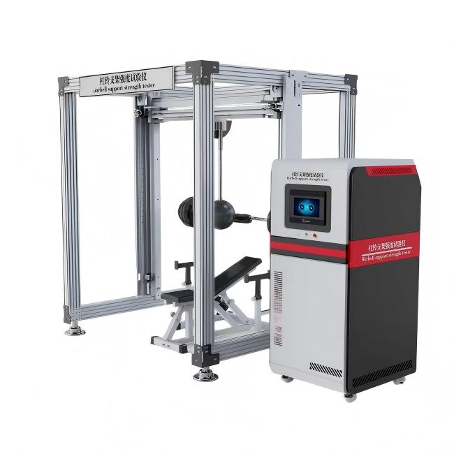 杠铃支架强度试验仪是用于检测杠铃支架承载能力和结构强度的设备,常见的有万能材料试验机和专门的健身器材静力加载实验机等PLC控制系统,支持自定义测试标准;