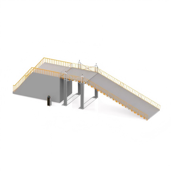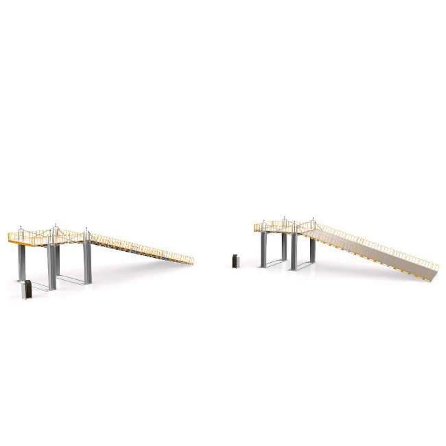 1.设备用途:设备用于测试机器人在不同方向(正向上坡、正向下坡、倒退上坡、倒退下坡)行进时所能通过的最大斜坡角度。2.功能要求:试验平台能够实现0°~最大45°的连续可调斜坡角度;承重1000Kg能稳定支撑机器人上、下坡行走,并满足连续增加角度的试验流程。支持机器人上下坡、正反向行走,设备不得产生晃动、表面