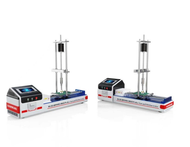 助行器支脚垫摩擦力测试仪是一种专门用于评估助行器具(如拐杖、助行架等)底部支脚垫在与地面接触时防滑性能的精密设备,其核心功能是通过量化摩擦力来确保产品使用安全。这类仪器广泛应用于企业研发、质量控制及第三方检测机构,能够客观评估不同材质(如橡胶、聚氨酯、塑料)支脚垫的防滑表现,并指导材料选型与结构优化 。该类测试不仅提升了产品质量,也推动了行业从“能用”向“好用”的品质升级,尤其在老龄化社会背景下,为老年人出行安全提供了坚实保障 。
