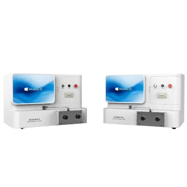 在测量中,粉末样品放入所述混合室并且当两个马达驱动的旋转翼同时搅拌时,一定量的油滴在样品上。通过检测扭矩的粘度变化,以计算吸收剂量量(ml/100g) ,吸油值及压样吸油值测量数据被打印出来包括在该地区搅拌的吸收剂量,扭矩变化曲线和温度。